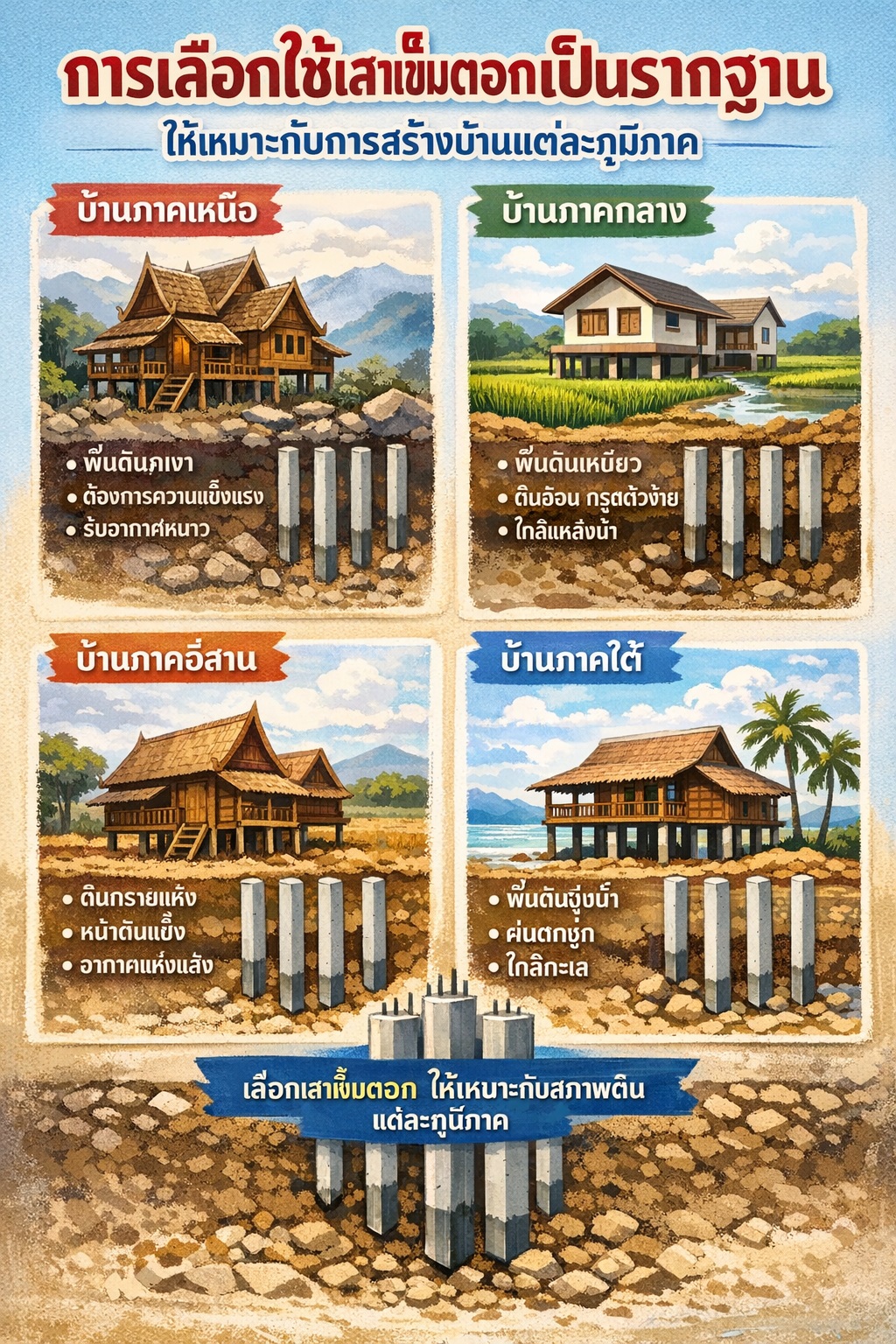 การเลือกใช้เสาเข็มตอกเป็นรากฐาน ให้เหมาะกับการสร้างบ้านแต่ละภูมิภาค